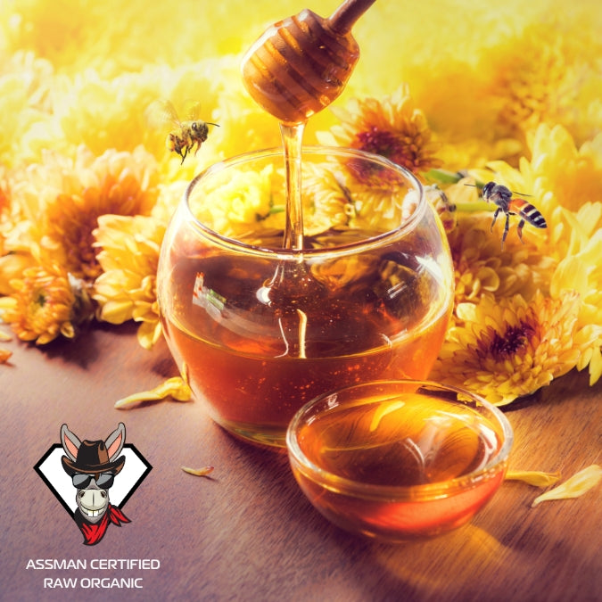 Loaded with essential vitamins and nutrients, our Spicy Honey Sauce not only satisfies your taste buds but also provides health benefits. Enjoy the goodness of organic honey while adding a kick of heat to your meals. Every bottle of Assman contains 51% Raw Unfiltered Texas Wildflower Honey.